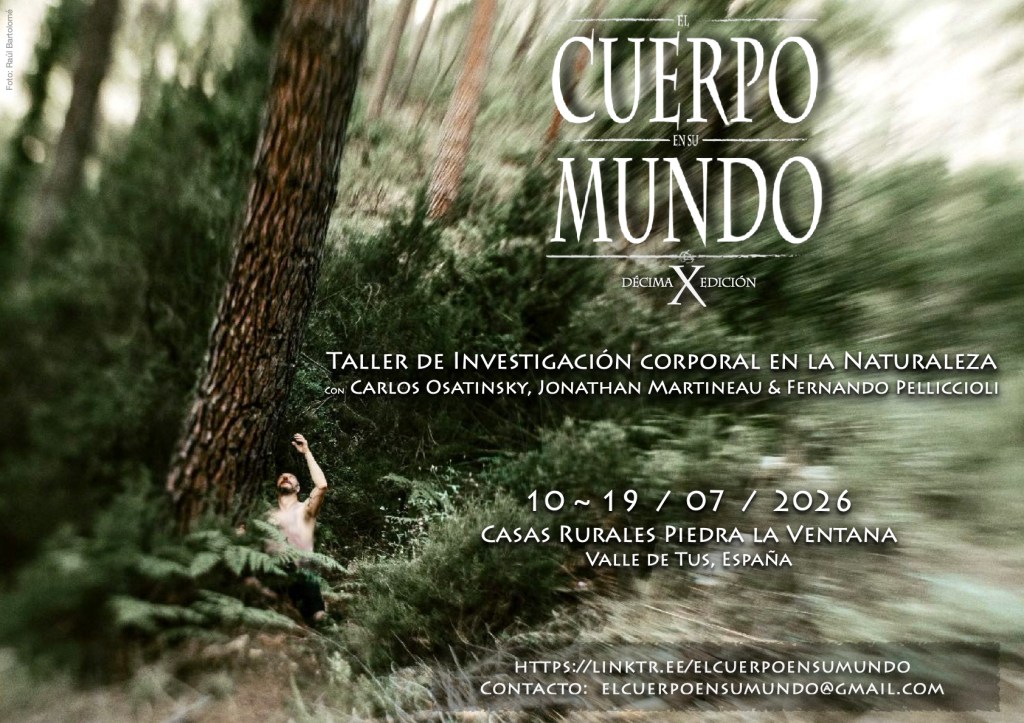 El taller de investigación corporal El Cuerpo en su Mundo tiene lugar desde el año 2017. Este verano celebramos la décima edición. Para la ocasión, volvemos a la propuesta inicial que contaba con 10 días. Diez días para buscar el apoyo en el esqueleto a partir del cual vivificar el subconsciente. Devolver el cuerpo a su mundo para que la naturaleza le devuelva el brillo al espíritu.