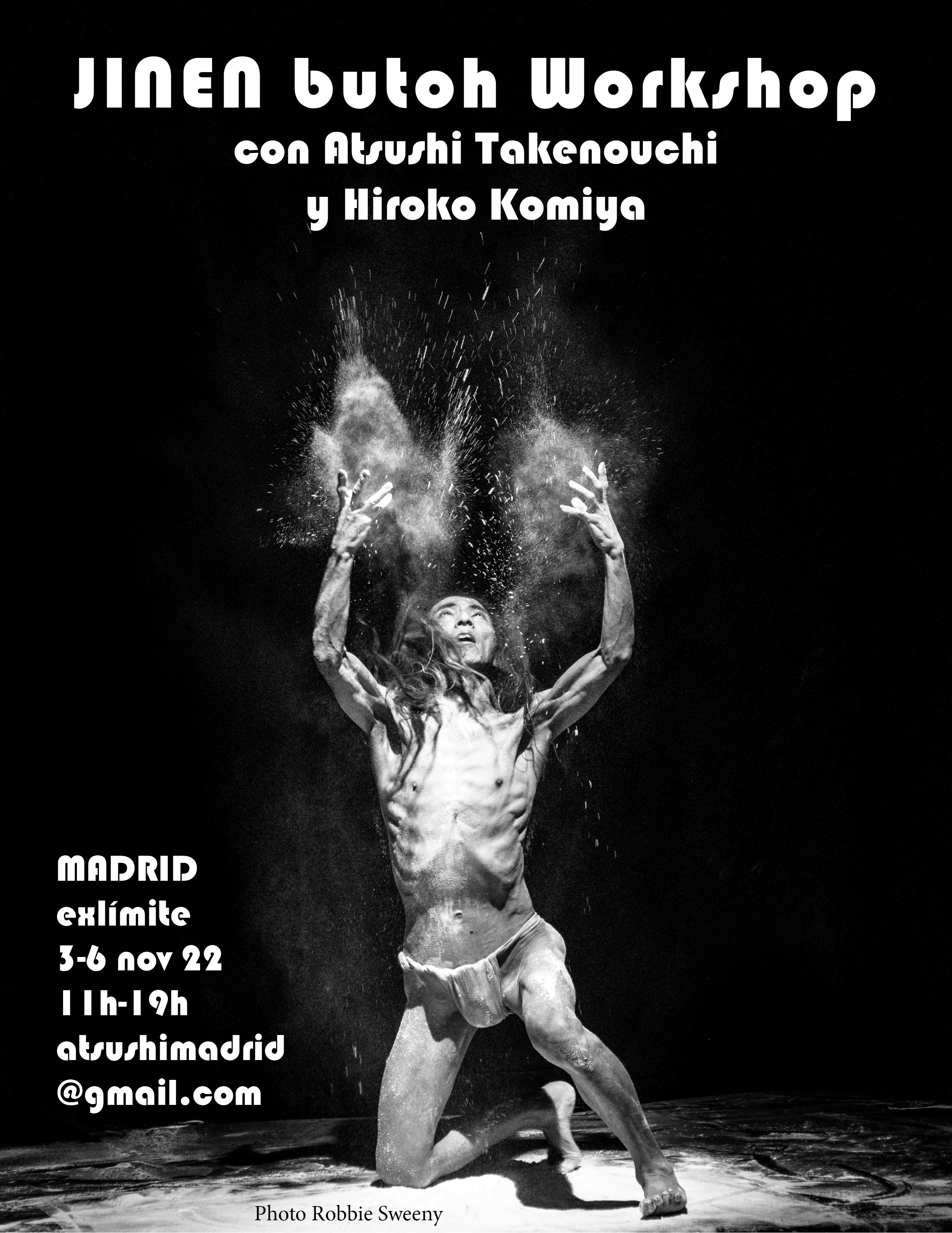 El taller Un Toque de locura, donde se investigan las zonas de resonancia entre el Contact-Improvisación y el butoh, entre el cuerpo físico de la materia y el cuerpo naciente del tiempo, se impartirá por las mañanas.